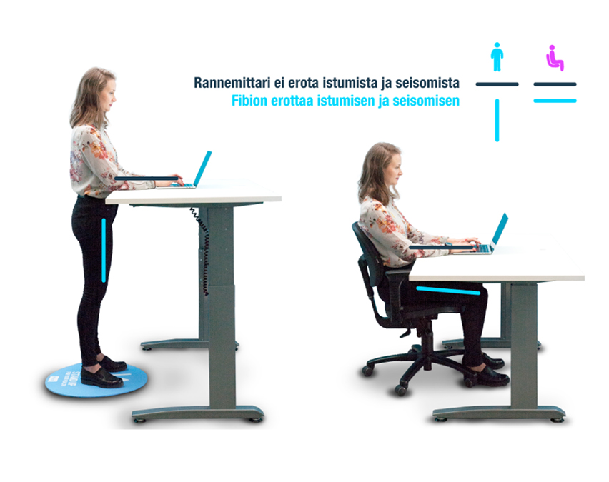 Fibion tunnistaa arjessa tapahtuvat eri pituiset istumis- ja seisomisjaksot, kevyen ja reippaan kävelyn, pyöräilyn sekä reippaan liikkumisen. Fibion mittaa ja analysoi eri aktiivisuustyyppien energiankulutuksen ja terveysvaikutukset taustatietojesi perusteella. Esimerkiksi Fibion kertoo seisomatyöpöydän tai työmatkapyöräilyn vaikutuksen arkiliikunnassasi, toisin kuin ranteessa pidettävät laitteet. Tuloksena on kattava raportti, joka kertoo ovatko arjen istuminen ja liikkuminen tasapainossa terveyshyötyjen kannalta.
